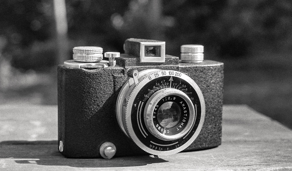 Ce modèle SEM Kim contenait une pellicule quand on me l'a donné. Après l'avoir chargée avec bien des difficultés sur la spire de la cuve et développée, j'ai pu récupérer quelques clichés très abîmés.En effet, à partir des éléments visuels et de l'identité des personnes sur les photos, j'ai pu estimer que le film est resté pendant près de 70 ans dans l'appareil.